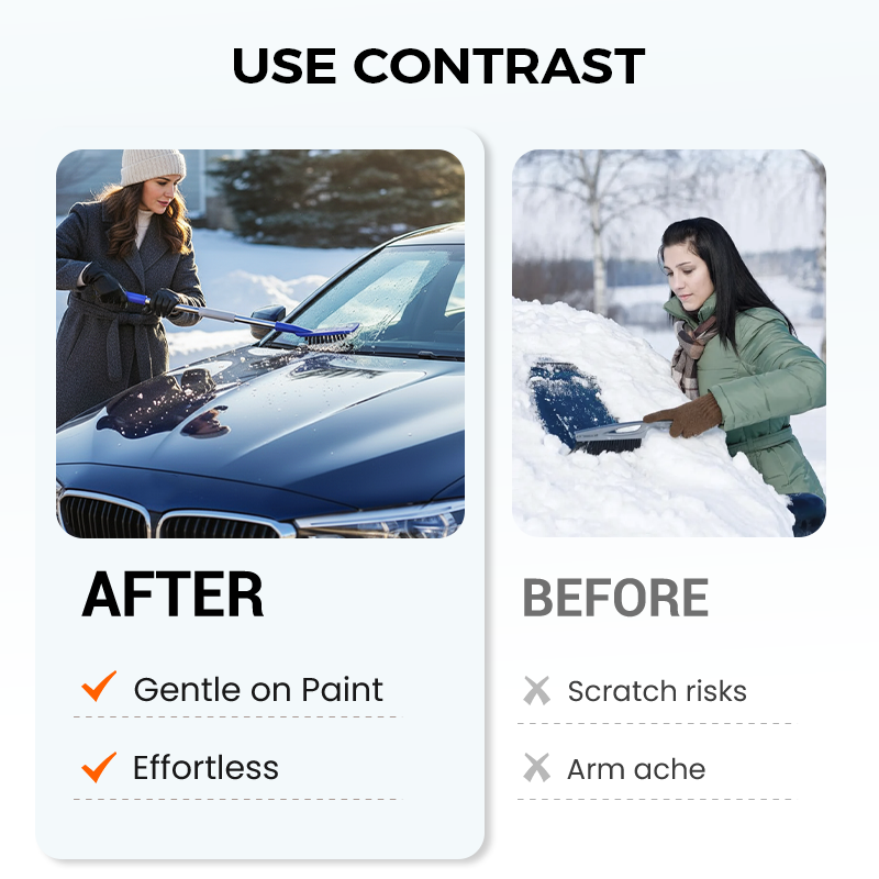 LACKVÄNLIGA BORSTAR - Har tjocka, mjuka borstar med kluvna spetsar som effektivt tar bort snö utan att repa bilens lack eller glas. Du kan tryggt rengöra din bil och bevara dess finish och totala värde.