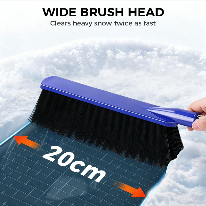 BRETT BORSTHUVUD - Det 20 cm breda borsthuvudet rensar effektivt stora ytor. Detta minskar avsevärt den tid och ansträngning som krävs för att sopa bort tung snö från bilens tak, motorhuv och fönster.